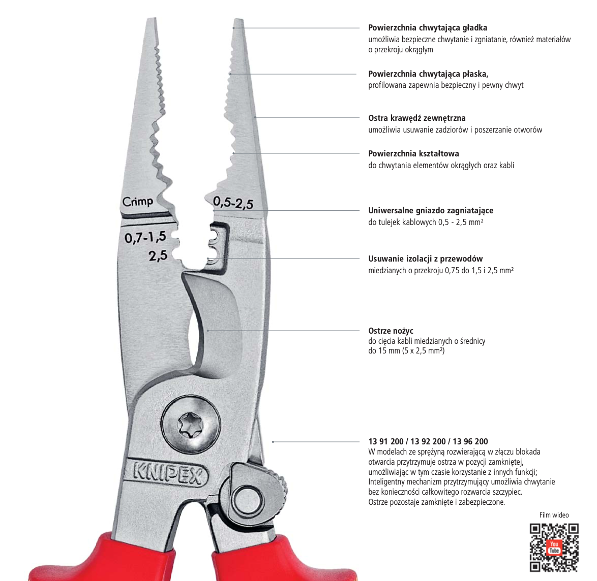 Szczypce VDE do prac elektroinstalacyjnych Knipex 13 96 200
