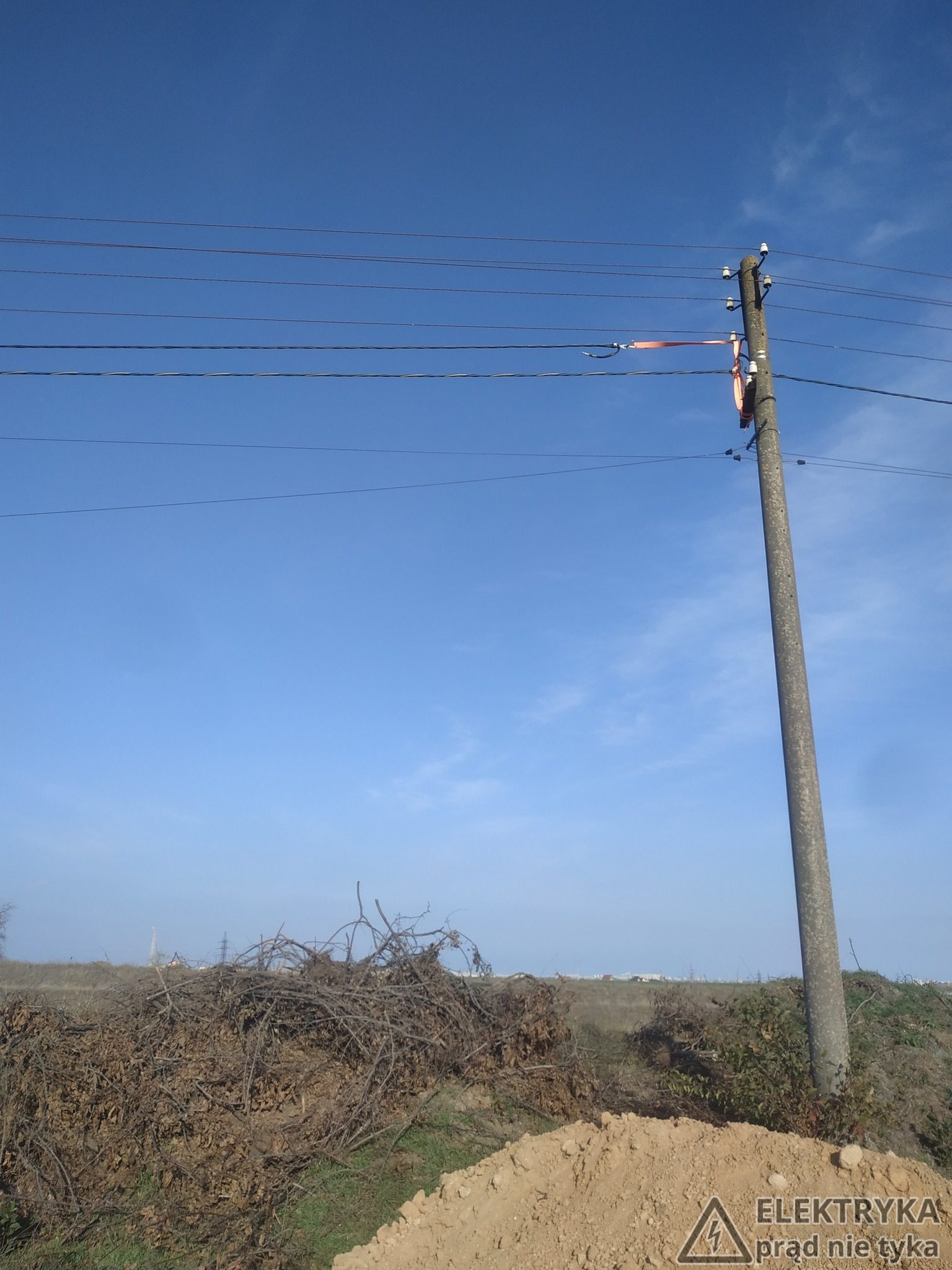 Strona główna Troszkę zabrakło naciaganie przewodu na slupie