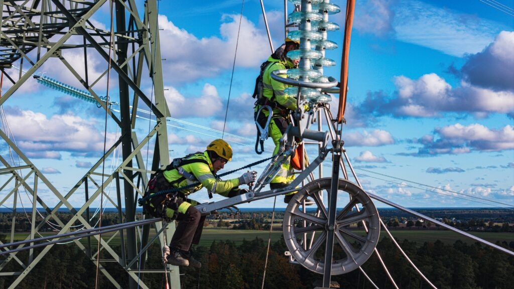 Prace przy podwieszaniu przewodów na linii Choczewo-Żarnowiec, fot. PSE