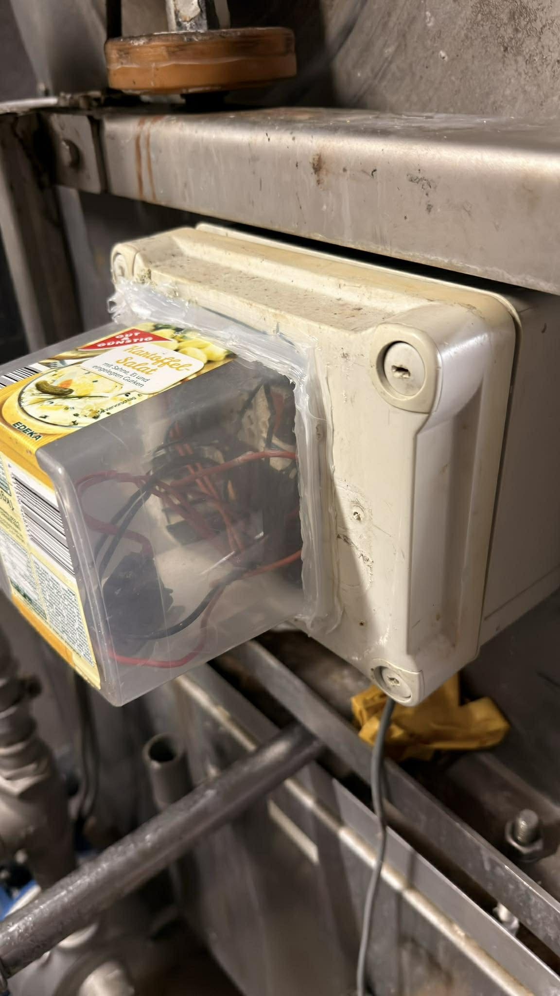 Pralnia przemysłowa w Szwajcarii zastosowano przeźroczystą osłonę powiększająca puszkę z atestem spożywczym 😉